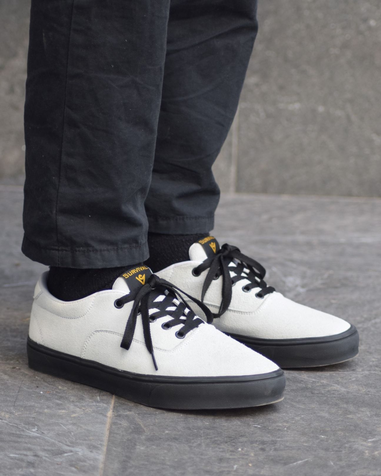 Corte de piel gamuza color blanco (Vacuno), suela de hule color negra y forro sintético.