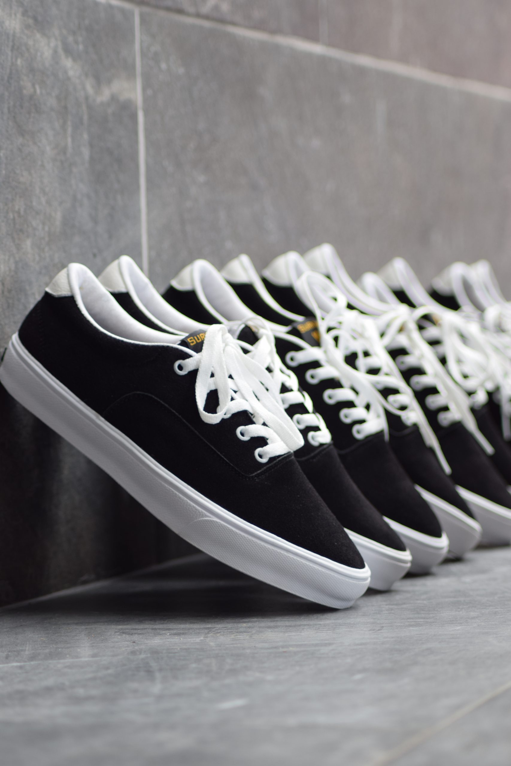 Corte de piel gamuza color negro (Vacuno), suela de hule color blanca y forro sintético.