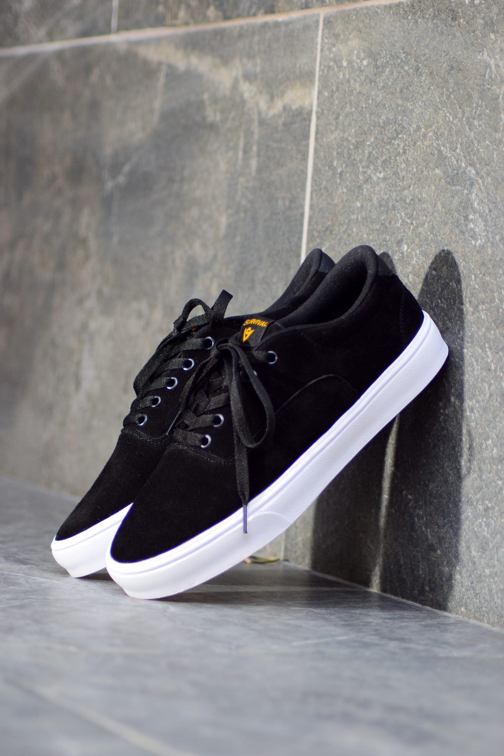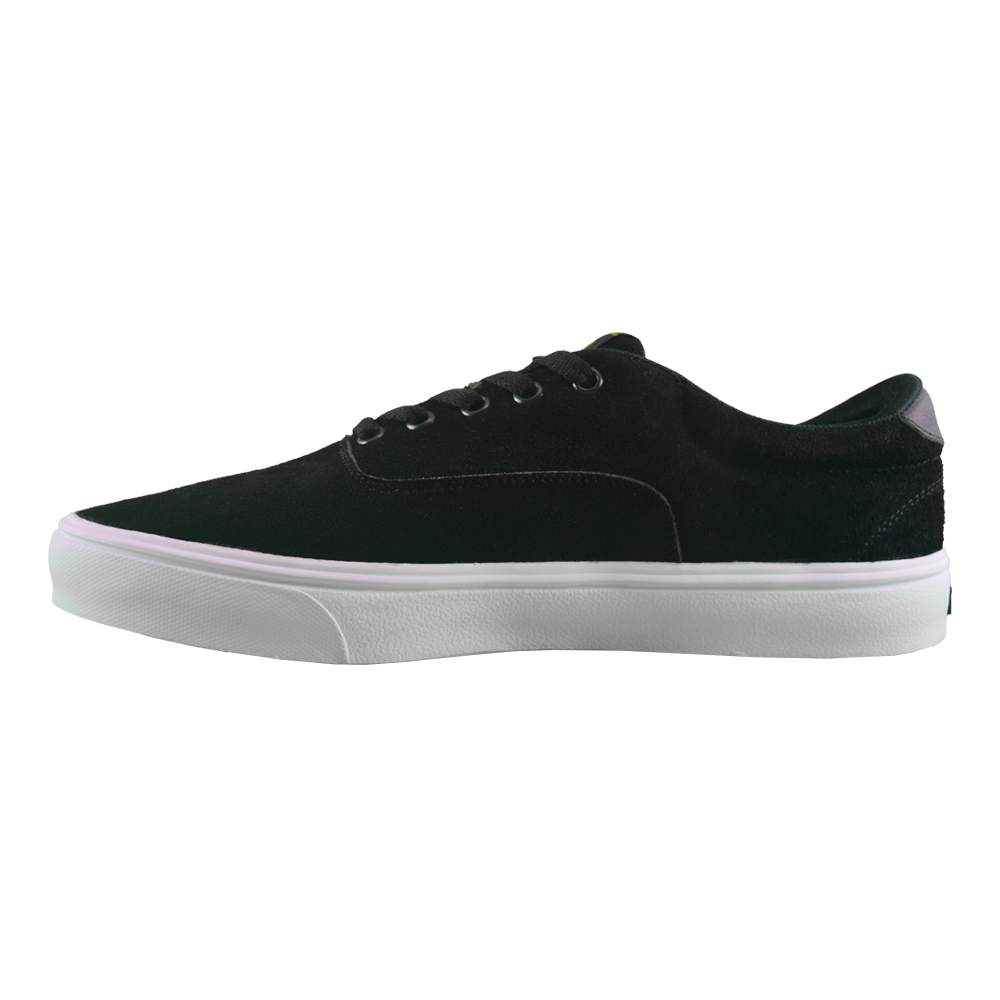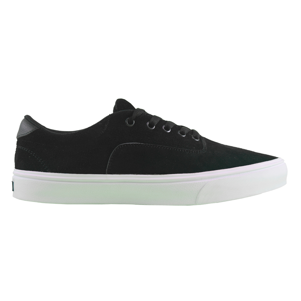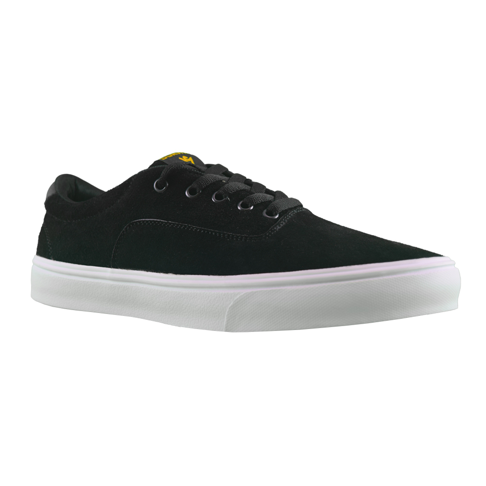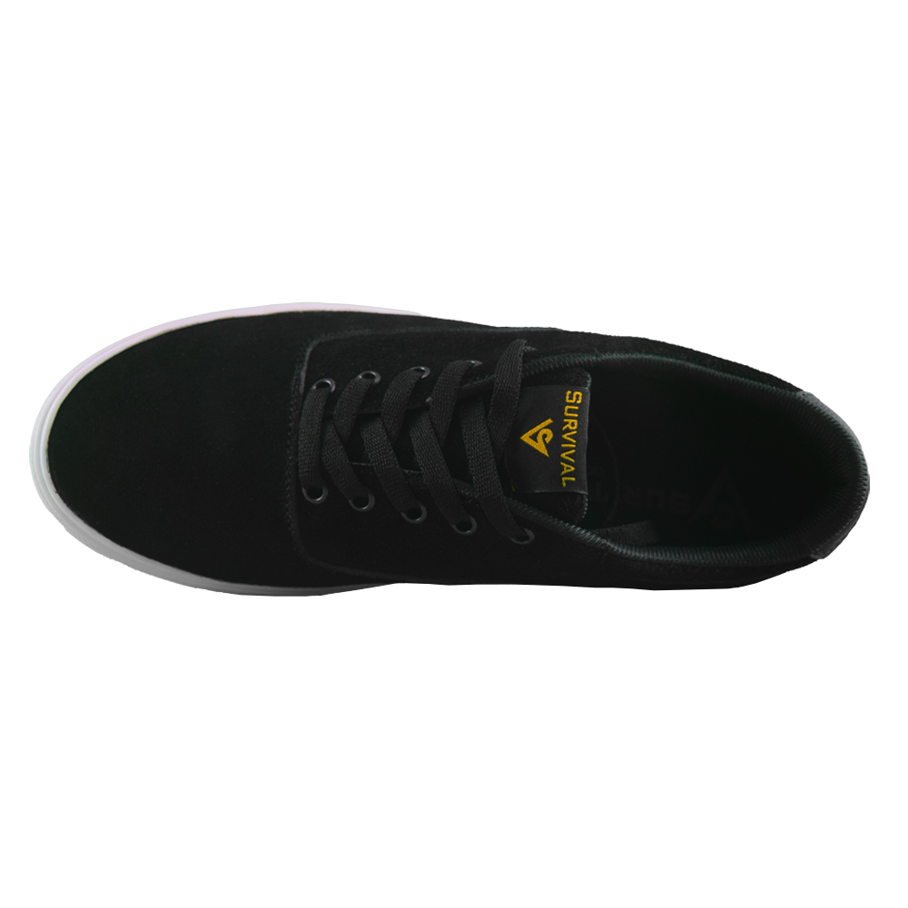 Corte de piel gamuza color negro (Vacuno), suela de hule color blanca y forro sintético.