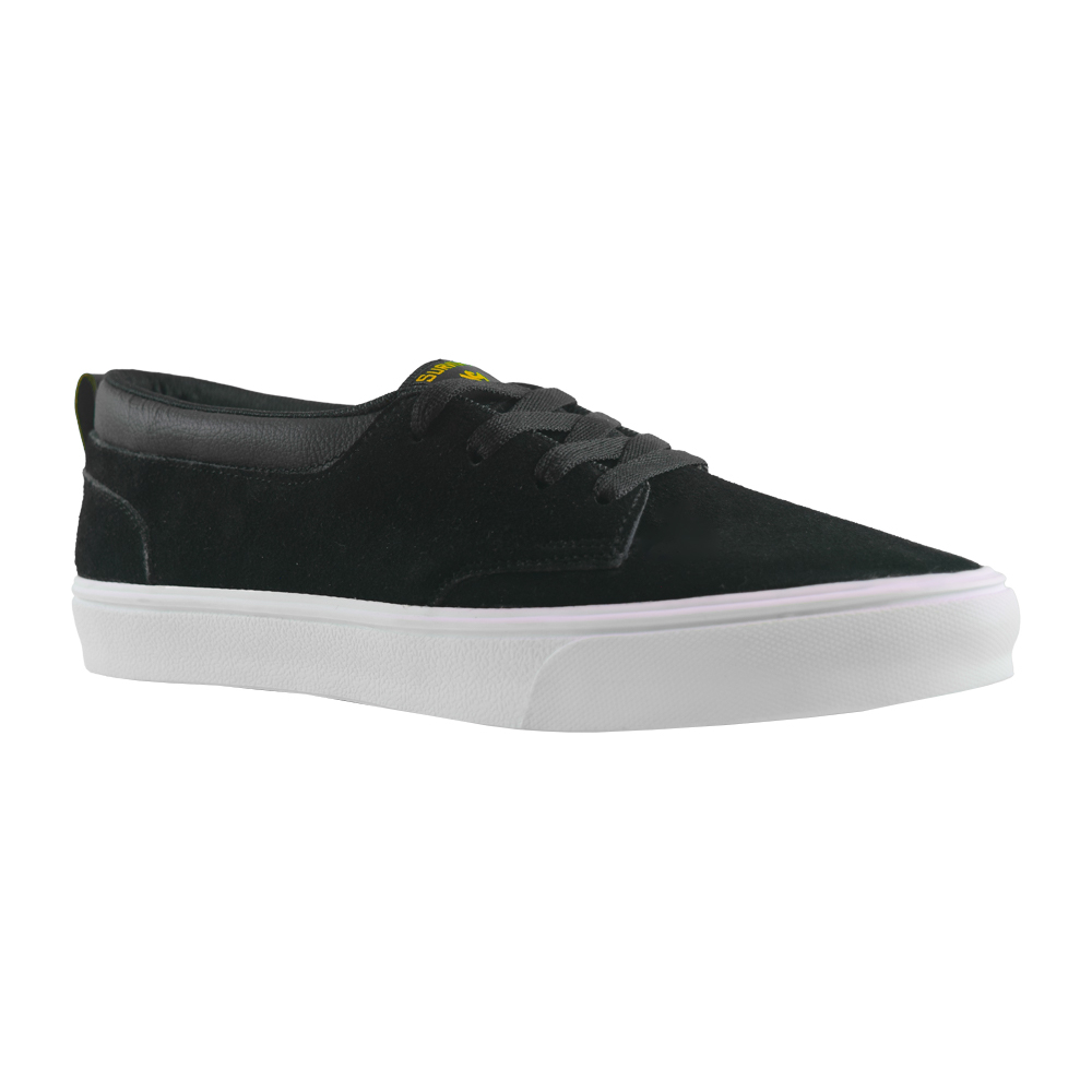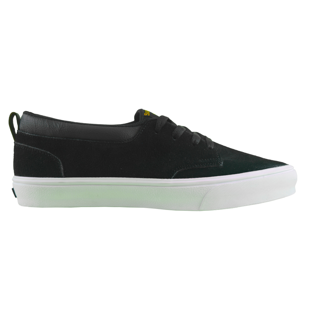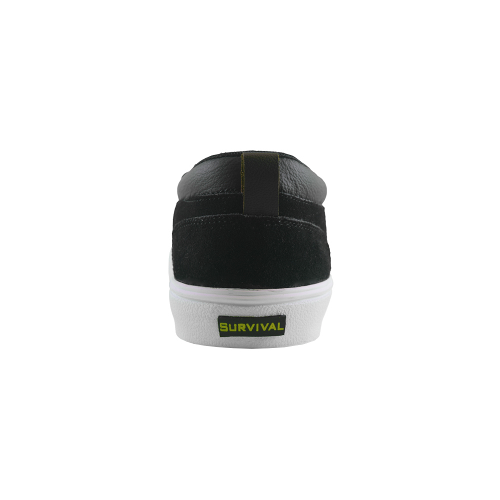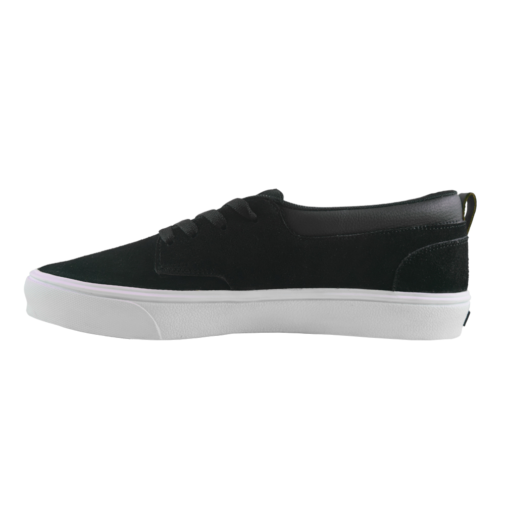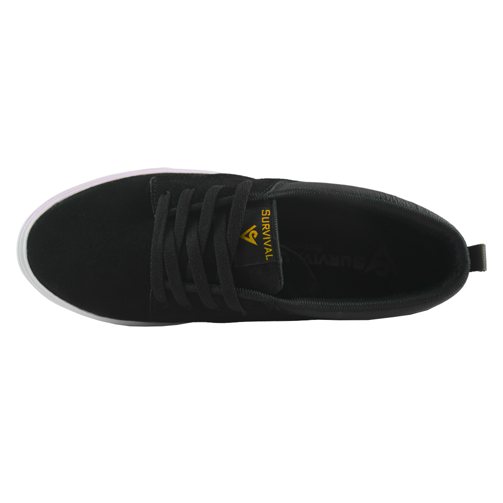 Corte de piel gamuza color negro (Vacuno), suela de hule color blanca y forro sintético.